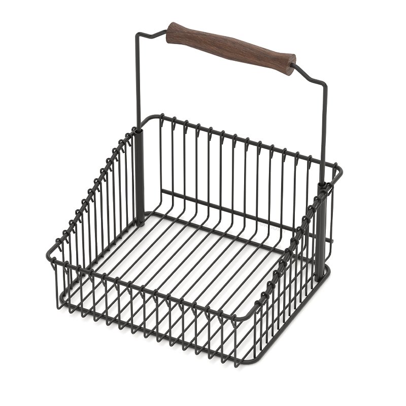 MG076B Kitchen Basket with Wood Handle for Rail