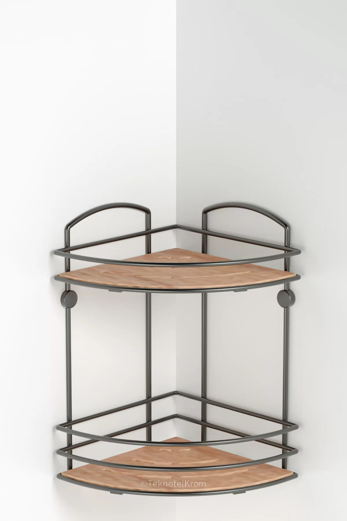 BK074 Bath Corner Shelf 2 Tier with Wood Design ABS