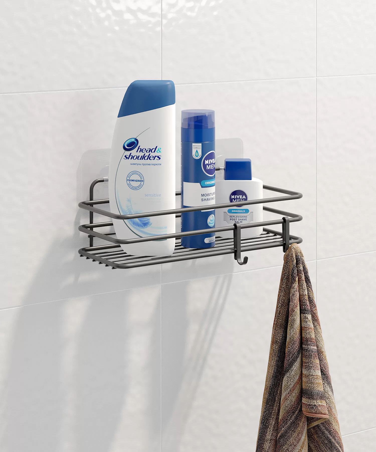 - ST117 Shower Caddy Bathroom Shower Organizer Shelves with Double Hooks, Self Adhesive No Drilling