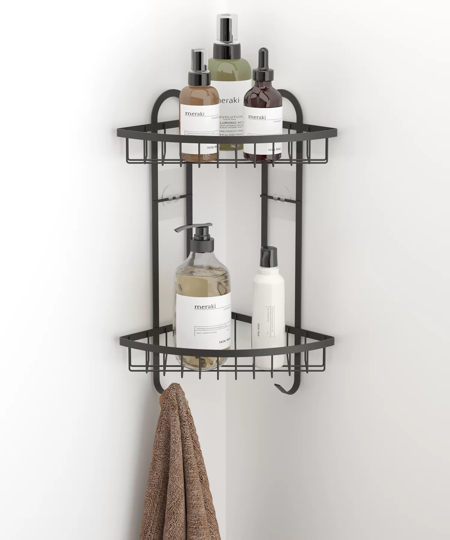 ST307 2 Tier Corner Shower Caddy with Hooks & Self Adhesive Sticker